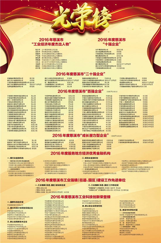 2016年度慈溪市工业强镇(街道、园区)建设工作先进单位