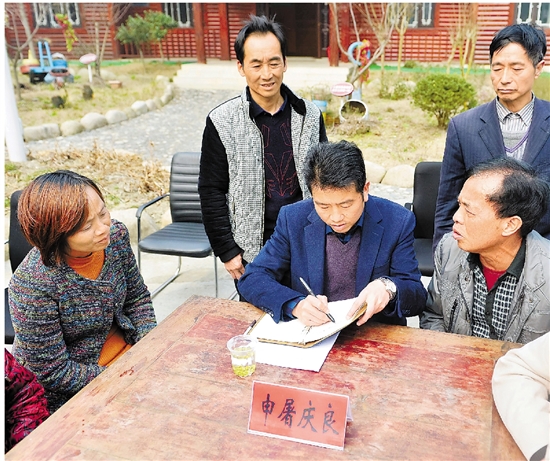 申屠庆良(左三)记录村民所提问题。 通讯员 单佳铭 摄