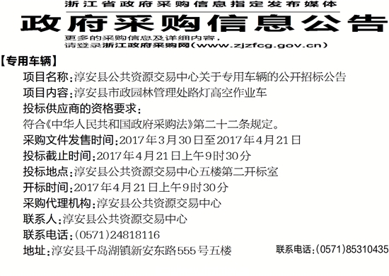 项目名称:淳安县公共资源交易中心关于专用车辆的公开招标公告