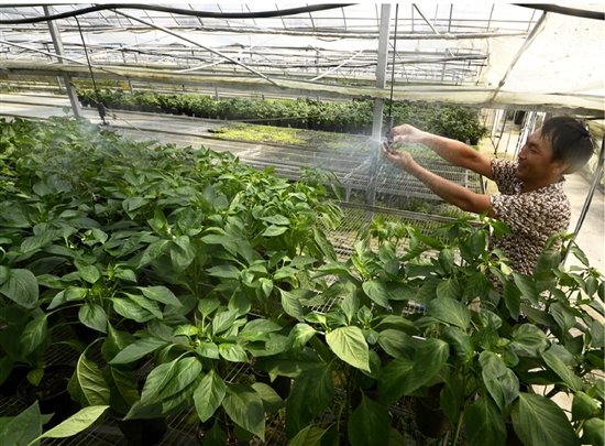 种植农户在调试喷淋设备
