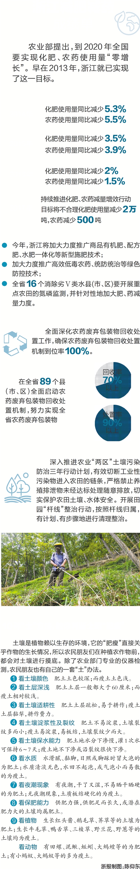 农业部提出,到2020年全国要实现化肥、农药使用量“零增长”。早在2013年,浙江就已实现了这一目标。