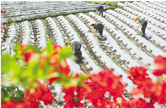 4月20日是谷雨节气,临安市天目山镇对石村农民抢抓农时,开展春耕春种,田间地头呈现出一派劳作的景象。 通讯员 胡剑欢 摄