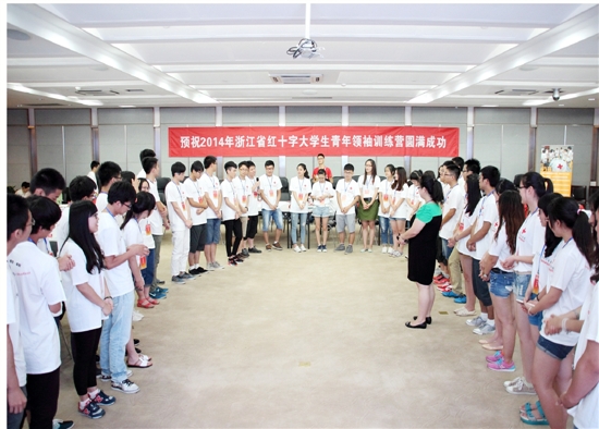 为促进红十字文化和精神在校园的传播,培养青少年骨干,省红十字会连续多年举办优秀红十字青少年夏令营(训练营)活动。图为2014年浙江省红十字大学生青年领袖训练营在浙江大学紫金港校区开营。