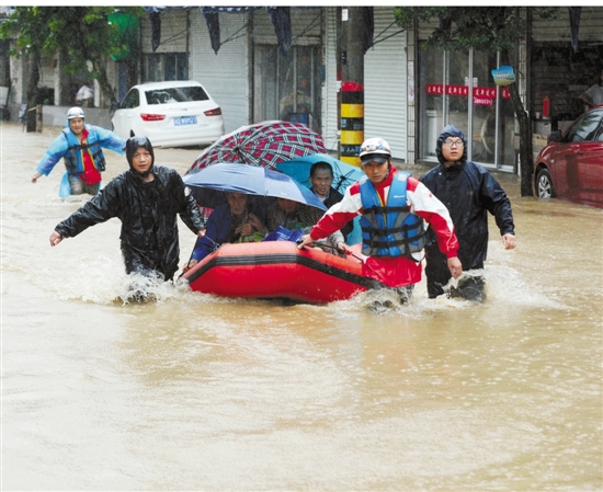 2015年7月,“灿鸿”台风造成绍兴市上虞区严重内涝,省红十字应急救援队紧急赶赴重灾区,协助转移被困群众。