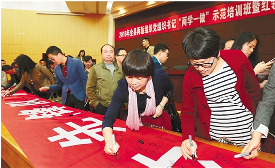 德清县举办两新组织党组织书记“两学一做”学习教育示范培训班。 姚海翔 摄(资料照片)