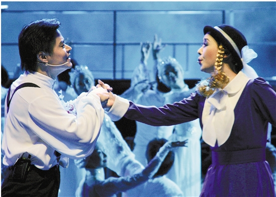 严圣民在音乐剧《蓝眼睛·黑眼睛》中扮演男主角。