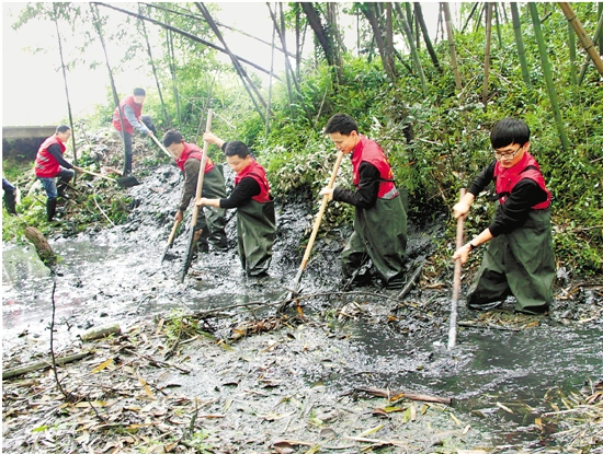 5月3日,湖州市吴兴区东林镇30多位团员青年开展清淤剿劣志愿活动。 拍友 邓德华 陈敬文 沈娟 摄