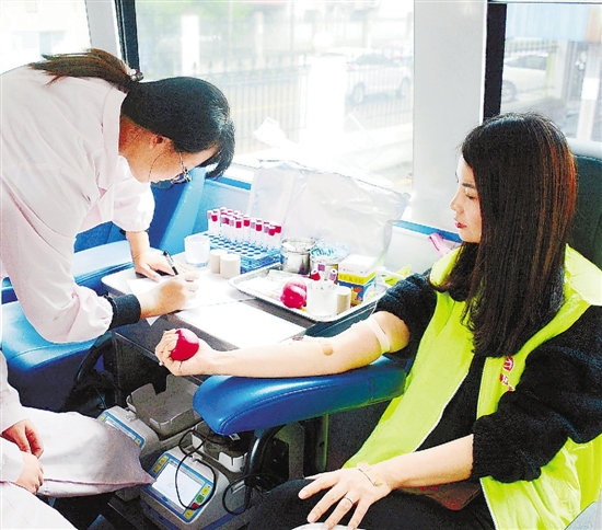 5月3日,台州市椒江区武警官兵、教师等青年志愿者纷纷登上献血车,撸袖献热血,迎接“五四”青年节。 拍友 陈宇 摄