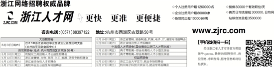 | 5月12日(周五) | 浙江省营销、生物、医药、化工、能源、环保专场招聘会 |