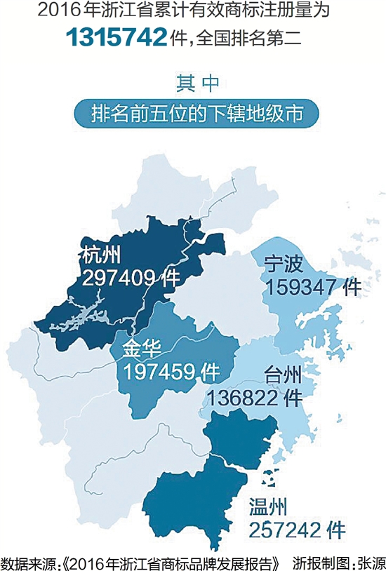 数据来源:《2016年浙江省商标品牌发展报告》