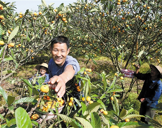 日前,德清县雷甸镇杨墩村水果种植户汪火根家的枇杷开始采摘。枇杷作为该镇的名优农产品,在唐武德年间就成为“贡品”,并有“天下枇杷数塘栖,塘栖枇杷出杨墩”之说,全镇枇杷的种植面积3000多亩,每年为村民增收2000万元。 姚海翔 摄