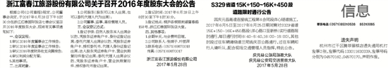 浙江富春江旅游股份有限公司关于召开2016年度股东大会的公告