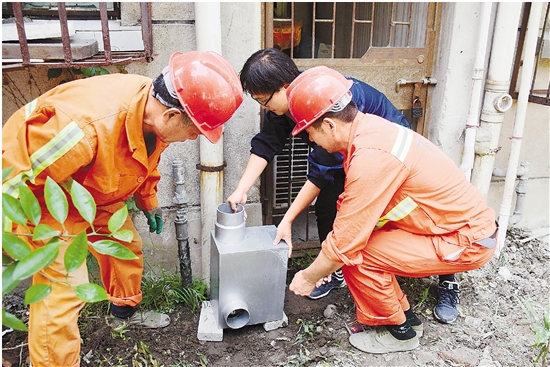 施工人员正在中东河沿线老旧小区安装雨污分流装置。 温艺华 摄