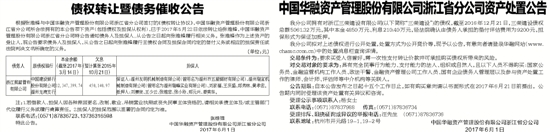 根据张维锋与中国华融资产管理股份有限公司浙江省分公司签订的《债权转让协议》,中国华融资产管理股份有限公司浙江省分公司所合法拥有的本公告项下资产(包括债权及担保从权利),已于2017年5月22日依法转让给张维锋,中国华融资产管理股份有限公司浙江省分公司特公告通知债务人及担保人,从公告之日起向张维锋履行相关义务。张维锋作为上述资产的受让人,现公告要求债务人及担保人,从公告之日起向张维锋履行主债权合同及担保合同约定的偿付义务或相应的担保责任或法院判决文书所确定的义务。