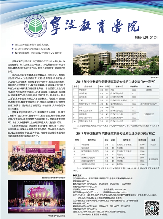 (1)学校本部地址:宁波市环城北路西段625号宁波教育学院招生办公室
