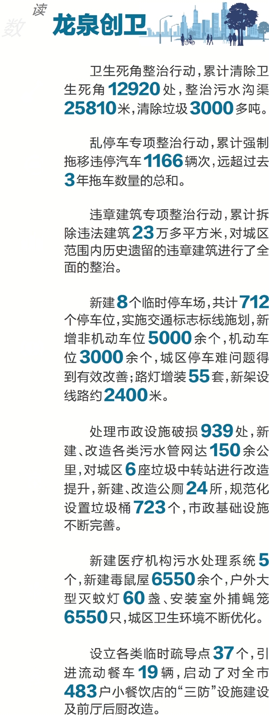 卫生死角整治行动,累计清除卫生死角12920处,整治污水沟渠25810米,清除垃圾3000多吨。