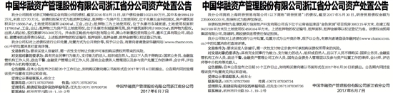 中国华融资产管理股份有限公司浙江省分公司资产处置公告