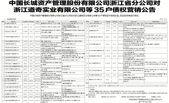 中国长城资产管理股份有限公司浙江省分公司拟对浙江道奇实业有限公司等35户债权进行组包处置,欢迎投资者进行购买。