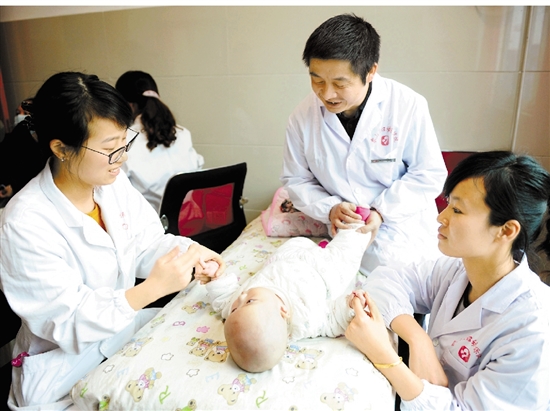 现在,小儿肌性斜颈、新生儿黄疸、小儿外感等病特别多,小儿推拿科就与省城大医院合作,请来中医儿科专家,学习、建立起相关病种治疗项目;