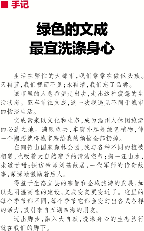 城市里的人总希望走出去,走出这种疲惫的生活状态。驱车前往文成,这一次我遇见不同于城市的恬淡生活。