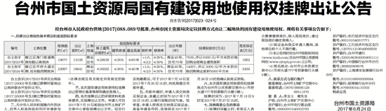 台州市国土资源局国有建设用地使用权挂牌出让公告