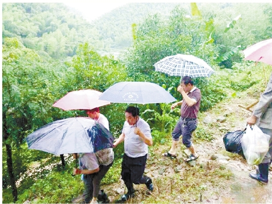 险情就是命令。凌晨4时许,连夜值守的乡干部们就组织各村党员干部们逐户巡查情况,帮助受危的农户及时转移。上午9时,当得知还有一位81岁老人曾根香仍住在洋源自然村的泥房里,“马上帮老人转移至安全处!”6位乡村干部们冒雨一路小跑,不到10分钟就赶到了老人家。
