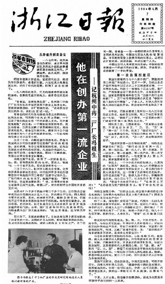 1984年6月7日,本报头版“改革者列传”栏目关注冯根生的创业事迹。
