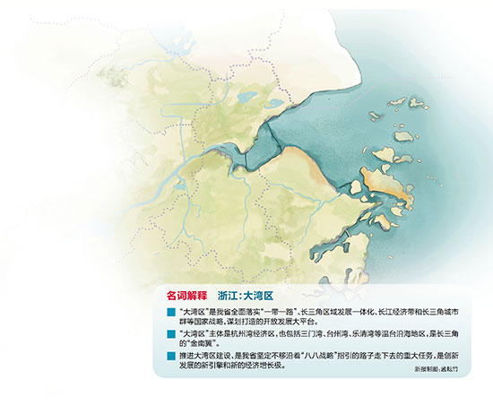 “大湾区”主体是杭州湾经济区,也包括三门湾、台州湾、乐清湾等温台沿海地区,是长三角的“金南翼”。