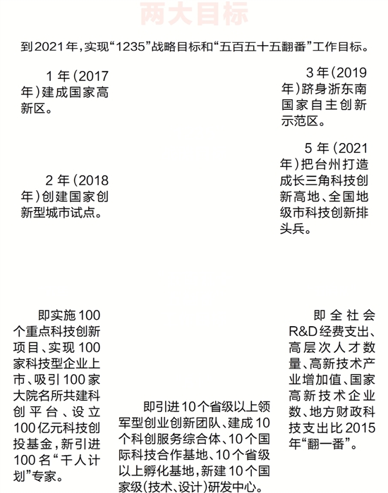 5年(2021年)把台州打造成长三角科技创新高地、全国地级市科技创新排头兵。