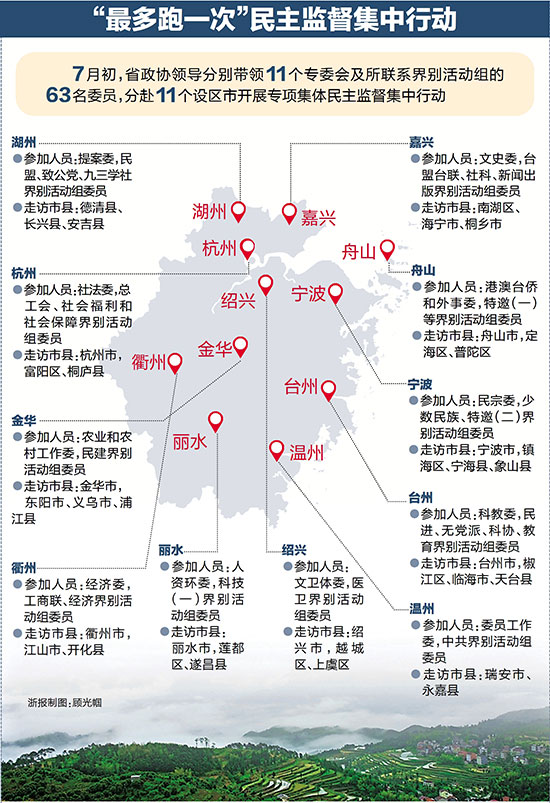 7月初,省政协领导分别带领11个专委会及所联系界别活动组的63名委员,分赴11个设区市开展专项集体民主监督集中行动