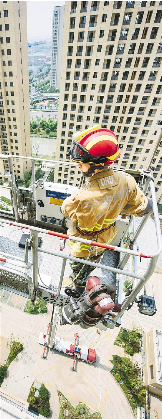 ③7月26日,宁波市消防支队在某小区高层20楼,进行火灾救援演练。