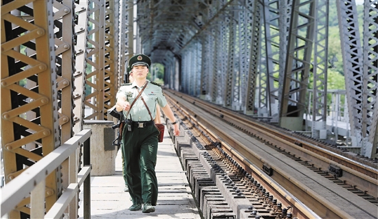 7月28日,高温炙烤下,武警浙江总队杭州支队三中队官兵正在钱塘江大桥上巡逻。在日复一日的守桥巡逻中,他们时刻把大桥和群众安全放在首位,把忠诚使命牢记心头。 本报记者 胡元勇 拍友 陈志法 摄