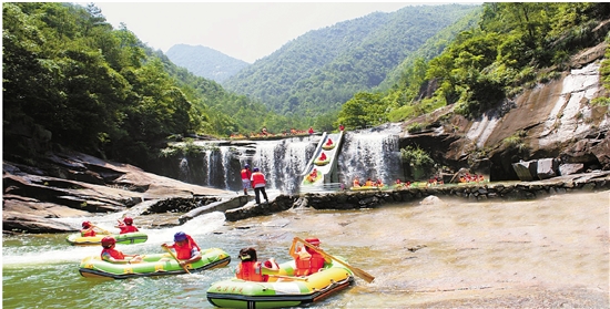 连日酷暑,在文成个性化旅游景区——九溪欢乐谷内,漂流等运动旅游项目让游客体验夏日激情。 百丈漈-飞云湖风景旅游管理委员会 供图