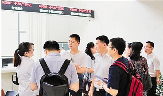 | 宁波市不动产登记服务中心根据群众需求,开展“微信+电话+网站+自助机”多通道咨询查询、“上门+预约+绿色”多通道精准办理等便民服务,按照“叫一次号、排一次队、交一份资料、办一件事”的要求,整合不动产登记流程后,将原先三部门分别办理改为一窗受理,超过1个小时的办理时间压缩到20分钟办结。图为人民日报、中央人民广播电台等5家中央媒体在现场采访。 顾群凯 摄 |