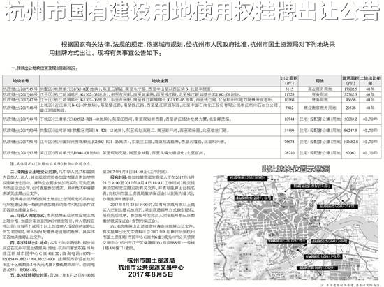 杭州市国有建设用地使用权挂牌出让公告