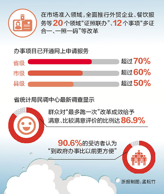 在市场准入领域,全面推行外贸企业、餐饮服务等20个领域“证照联办”、12个事项“多证合一、一照一码”等改革