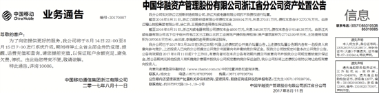 中国华融资产管理股份有限公司浙江省分公司资产处置公告
