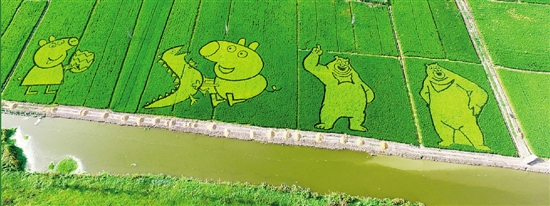 | 熊大熊二、小猪佩奇……宁波奉化裘村镇,一片文艺范十足的漫画稻田令人眼前一亮。据了解,这片稻田共有300余亩,包含了10余个漫画图案,为美丽乡村增添了一道亮丽风景。 本报记者 潘良干 姚群 石怡锋 摄 |