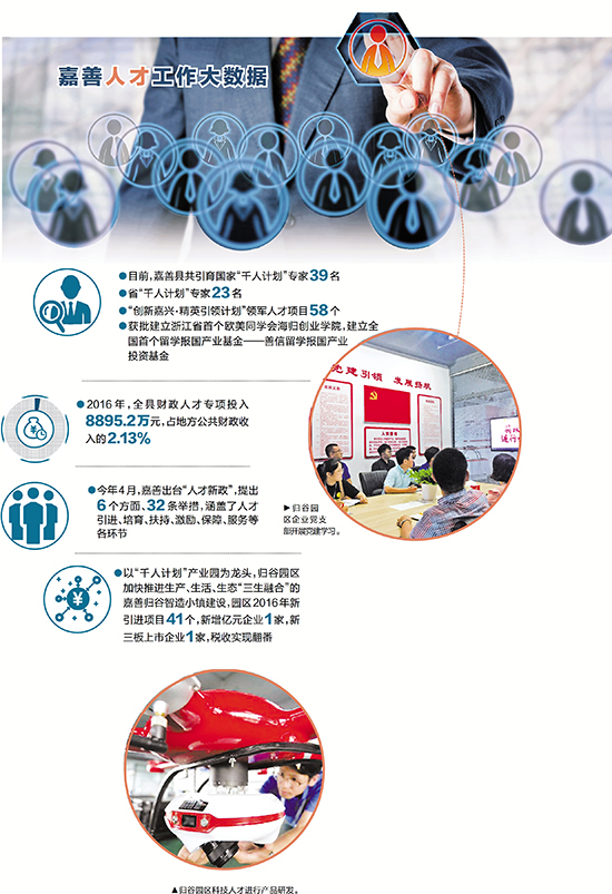 ●今年4月,嘉善出台“人才新政”,提出6个方面、32条举措,涵盖了人才引进、培育、扶持、激励、保障、服务等各环节