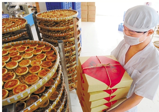 义亭镇一家企业正在用传统工艺制作中秋月饼。 (图片由义乌市供电公司提供)