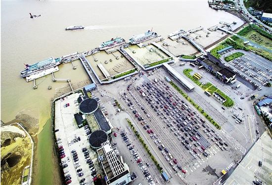 舟山三江客运中心,车辆源源不断涌来,码头安排轮渡滚动发班,一切井然有序。 拍友 李世浩 摄