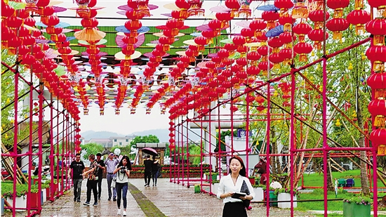 国庆喜逢中秋,义乌市马畈村挂起上万盏花灯。千姿百态的龙灯、工艺灯、动物灯、人物灯、花鸟灯等,与乡村美景交相辉映,分外妖娆。