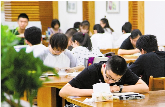 10月2日,宁波市图书馆正常开放,许多市民选择阅读过“十一”。 记者 应磊 摄