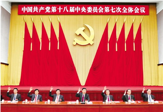 中国共产党第十八届中央委员会第七次全体会议,于2017年10月11日至14日在北京举行。这是习近平、李克强、张德江、俞正声、刘云山、王岐山、张高丽等在主席台上。 新华社记者 马占成 摄