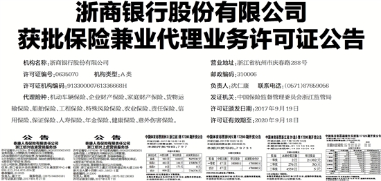 发证机关:中国保险监督管理委员会浙江监管局