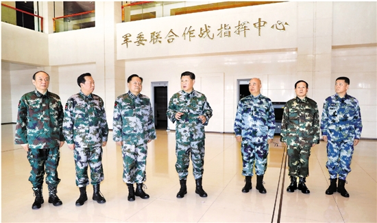 | 11月3日,中共中央总书记、国家主席、中央军委主席、军委联指总指挥习近平视察军委联合作战指挥中心,表明新一届军委贯彻落实党的十九大精神、推动全军各项工作向能打仗、打胜仗聚焦的鲜明态度。这是习近平带领军委一班人研究军委联指中心建设情况。 新华社记者 李刚 摄 |