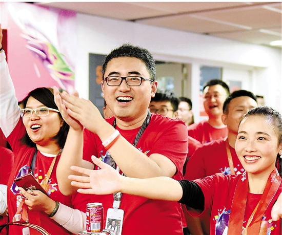“双11”前夕,一些电商负责人为“店小二”们加油打气,迎接通宵挑战。 记者 董旭明 摄