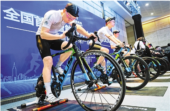 11月25日,全国首届智能体育大赛启动仪式暨智能体育产业峰会在杭州开幕。现场各种智能器材让体验者大呼过瘾。