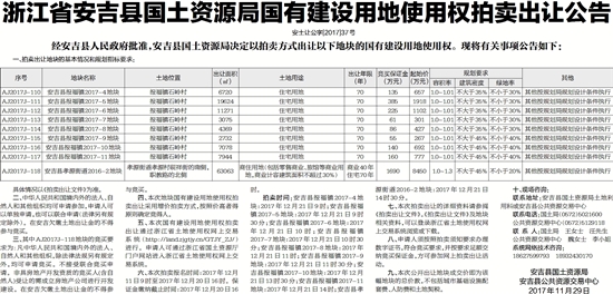 浙江省安吉县国土资源局国有建设用地使用权拍卖出让公告