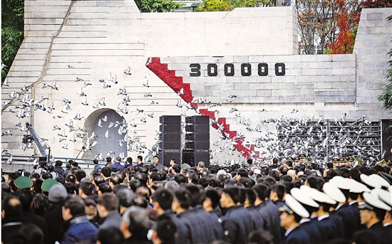 12月13日,南京大屠杀死难者国家公祭仪式现场放飞和平鸽。 新华社记者 季春鹏 摄